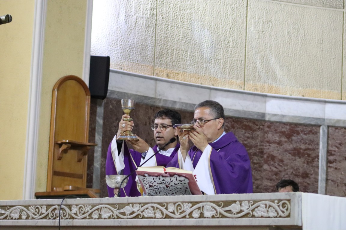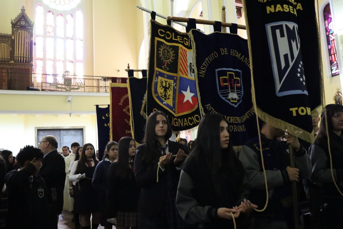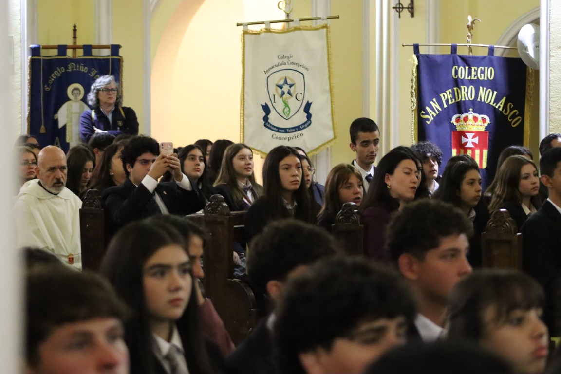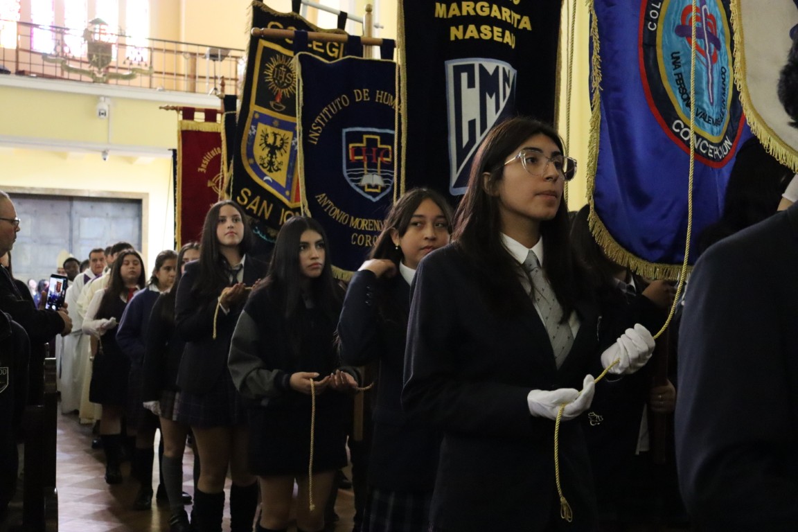 Presidió la Eucaristía el Arzobispo de Concepción Monseñor Sergio Pérez de Arce y concelebraron el Obispo Auxiliar Monseñor Oscar García y el Deán de la Catedral Pbro. Francisco Osorio. Monseñor Sergio saludó con afecto y señaló “es una alegría verlos, como representantes de los Colegios Católicos. Saludo a los estudiantes, profesores, hermanos sacerdotes, asistentes de la educación; celebremos con alegría la misa y pidamos al Señor que nos ayude a ser buenos discípulos suyos en medio de las comunidades educativas y de la sociedad”.